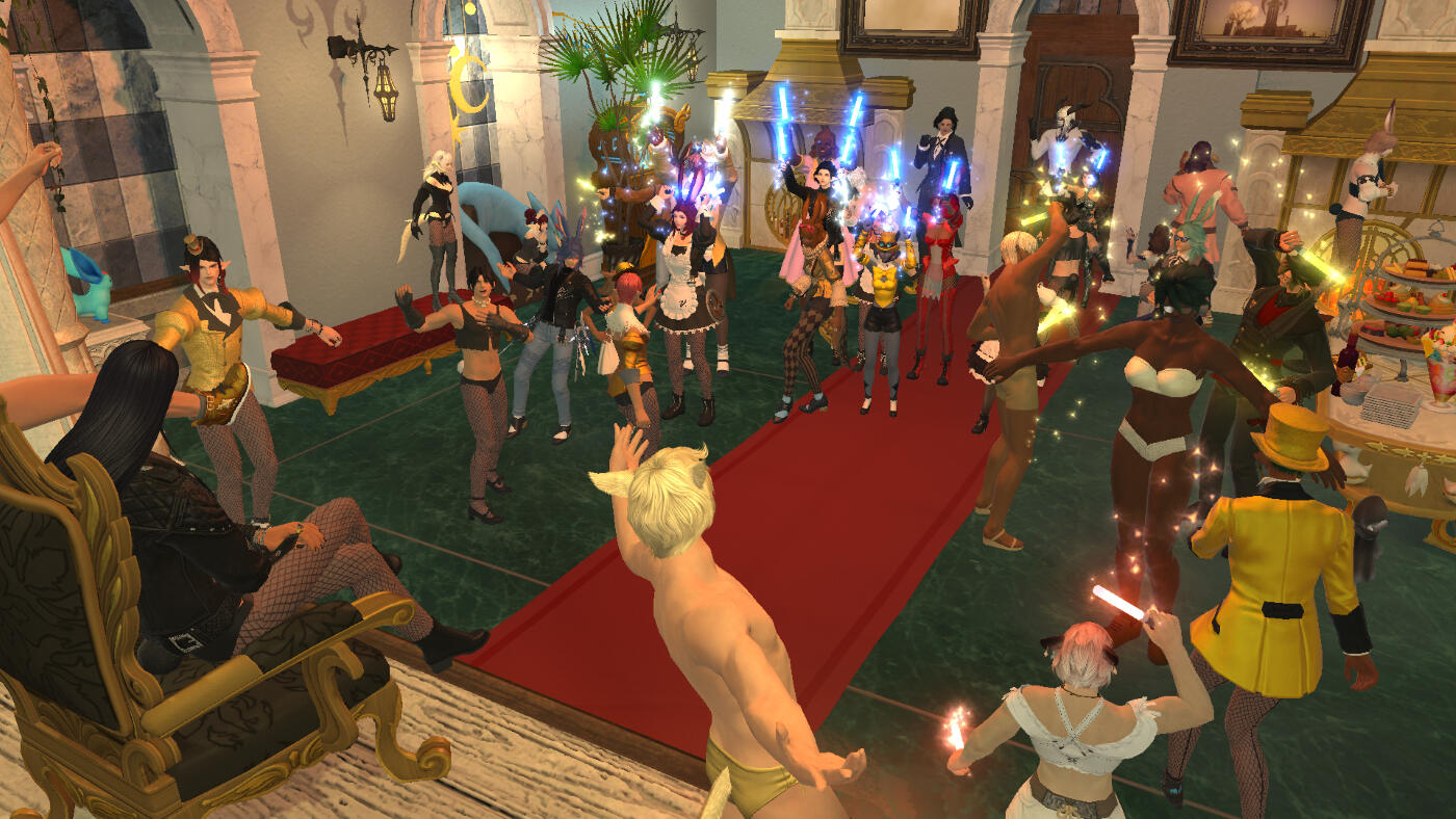 ● Given the source material it is inspired by, this event is strictly 18+. That being said, it is a THEMED party, not a movie screening with notoriously fun yet raunchy callouts! Please keep chat relatively SFW outside of discussions of movie scenes.● Do not spam or use shout/yell chat. This is reserved for the hosts, and will be used sparingly due to the location this year being in the overworld.● NO drama will be allowed whatsoever. Please notify hosts if there is an issue between guests or if any other kind of help is needed.● This is a vanilla-friendly event (hosts play this way). Feel free to post modded outfits and gposes in the party hashtag so others can see your character! But please do not discuss mods or other third party apps in game chat. Additionally, do not express displeasure if an artist takes the time to draw your vanilla character model!