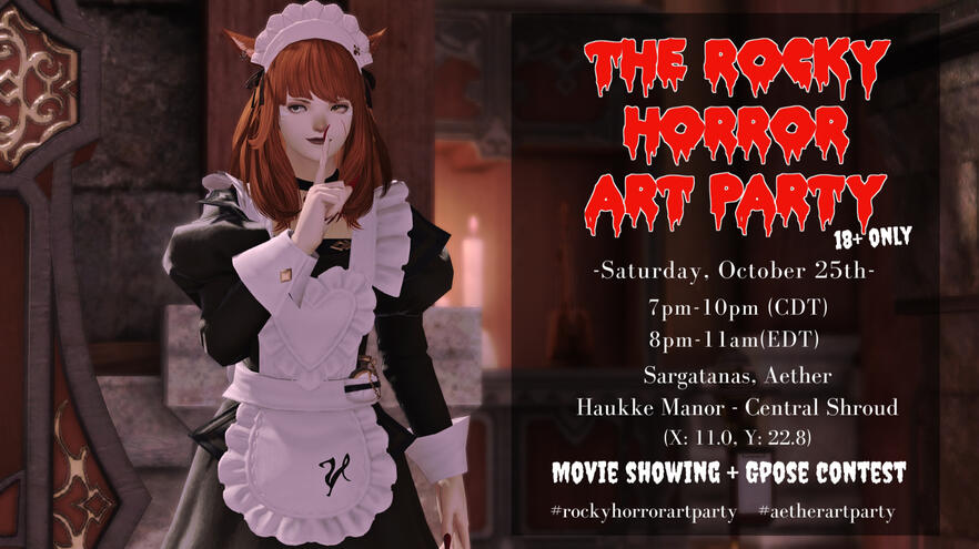 An annual social event in FFXIV to draw, gpose and have fun while dressing as characters from the Rocky Horror Picture Show.